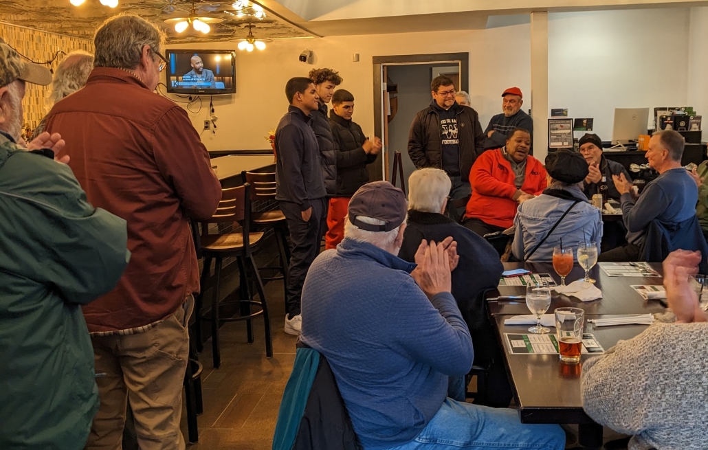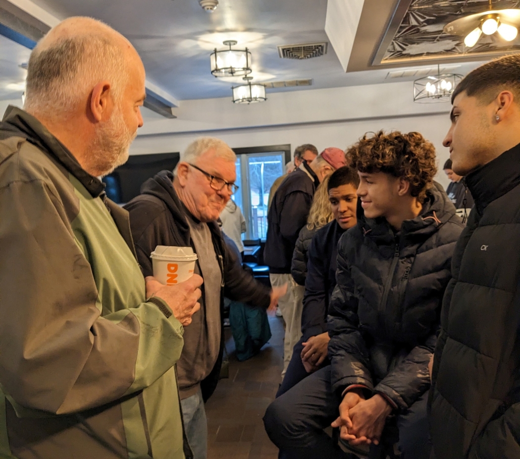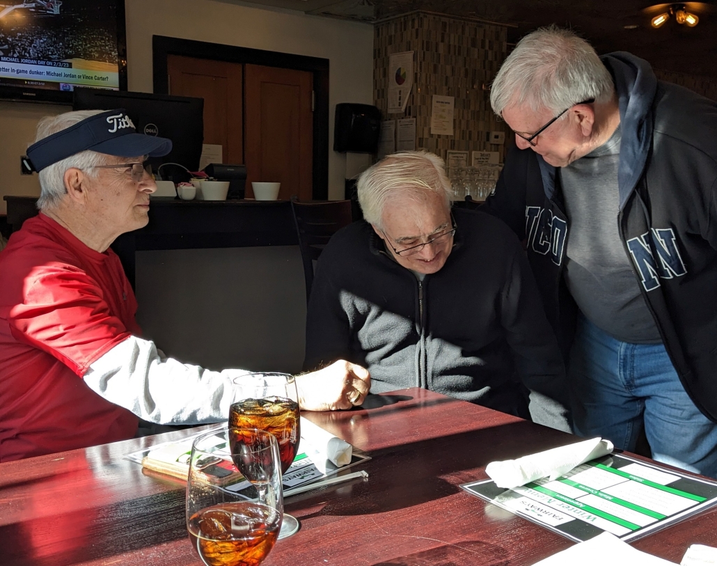 Tom Poulos (back to camera), Christine Pelletier, Ron Bogue and his brother Bob Bogue