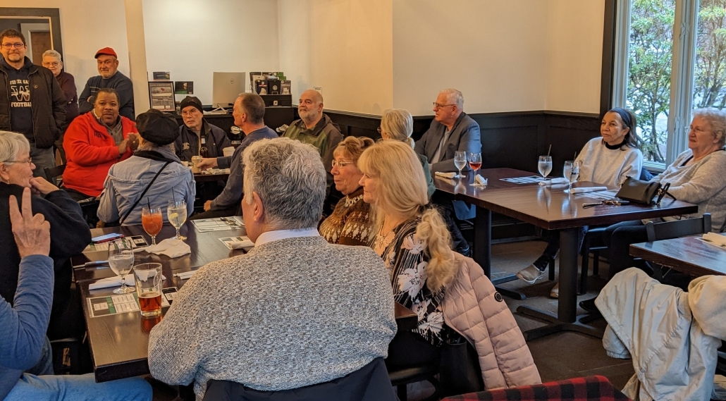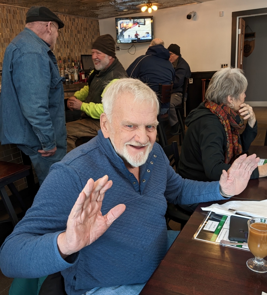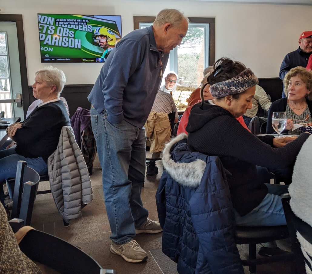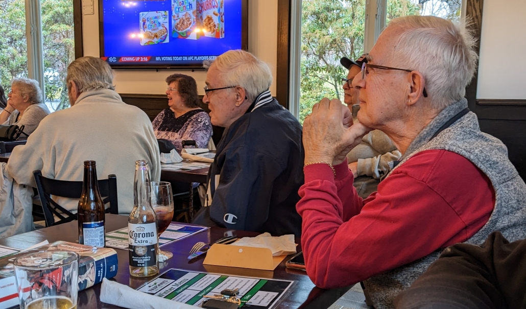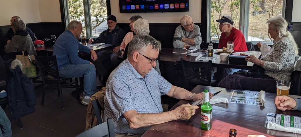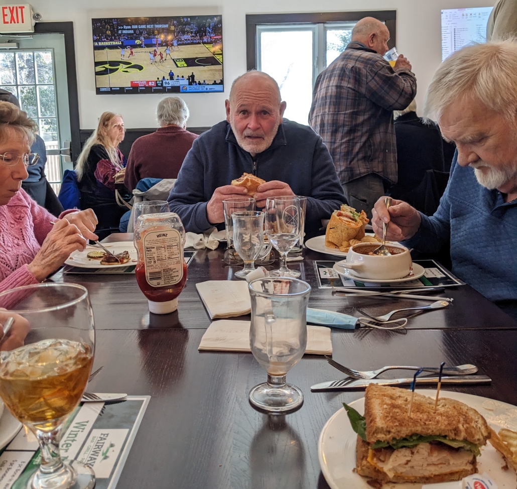 Ed Reynolds , at table in back Lindy Corey and Ann (Goettlich) Gueutal, , Ron Bogue, Bob Bogue, and Linda Manning