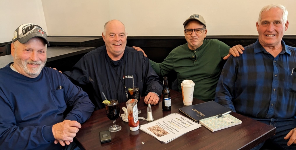 Joanne Pryor, Marjorie Andrychowski, Chub Young, Chris Poulos, Terry Therrien, Woody, Bill Card, and Lindy Corey.