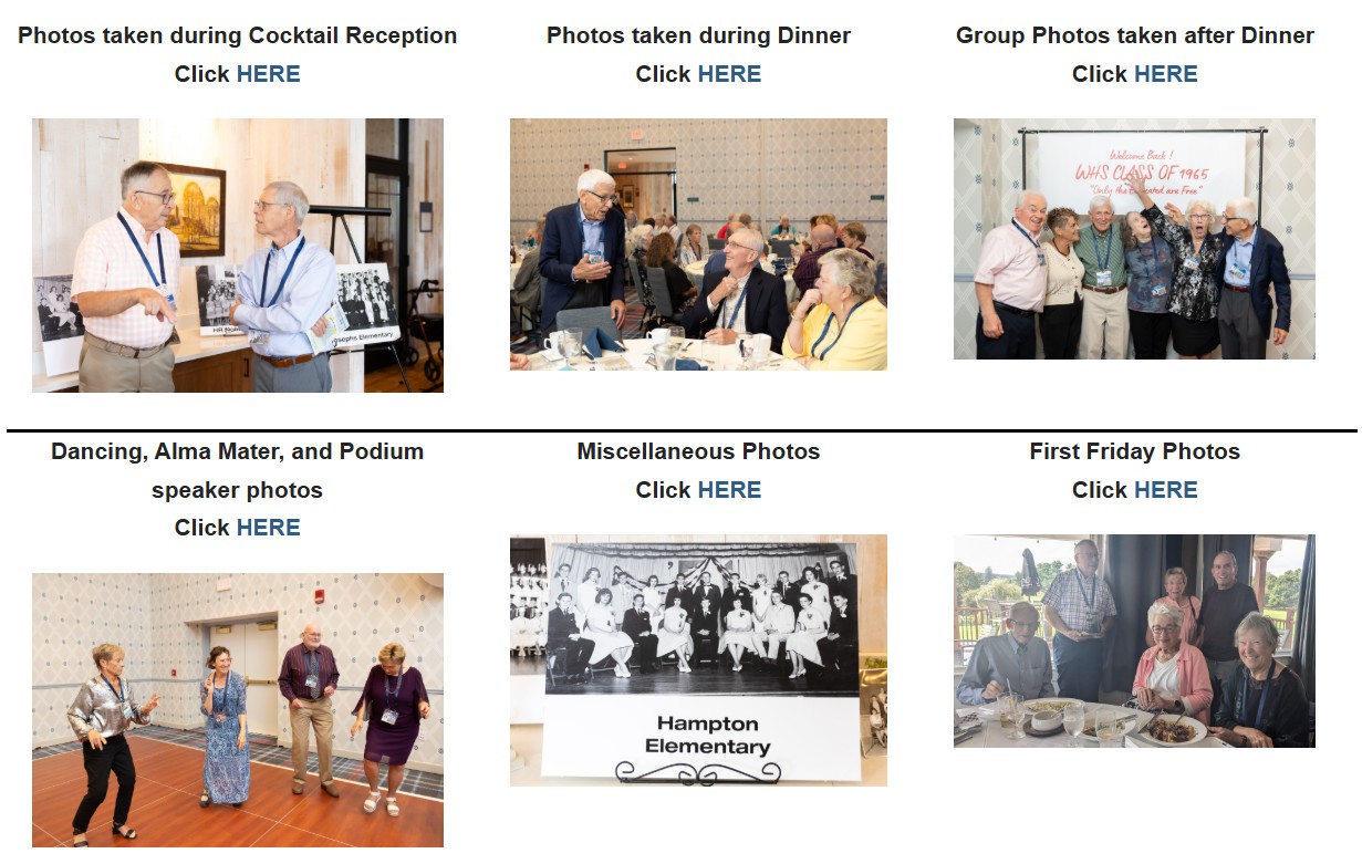 The WHS`65 60th Reunion was held on September 4, 2025 at the Graduate Hotel in Storrs, CT. This was the same venue used by the 50th 2015 Reunion but the Graduate was known as the Nathan Hale Inn in 2015. The reunion was attended by over 70 classmates and guests.